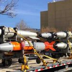 Un remolque cargado con modelos de prueba B61, así como bombas nucleares B83 (estos últimos se ven en el extremo derecho)