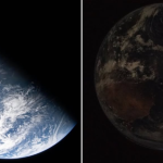 En una de las fotografías se puede ver el planeta entero con el azul predominante del océano, remolinos de nubes blancas y una gran masa de tierra marrón que corresponde a África, imagen que evoca una captada por la misión Apolo 17.
