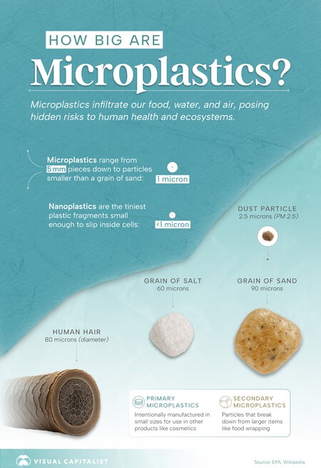 Y este gráfico preparado por Capitalista visual Nos permite poner el tamaño de los microplásticos en contexto al compararlos con más elementos cotidianos.