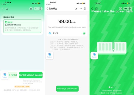 Hay que ir con la aplicación previamente configurada y, en mi caso, cargué una tarjeta prepago Revolut. No tuve ningún problema durante la semana que estuve en Beijing. Escaneé el código QR de la estación de carga con el propio Alipay y… bendito sistema de traducción. Trabaja cuando quiere y traduce algunas cosas con regularidad, pero lo suficiente como para entenderlo.