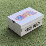 La caja de las Nike Mind también busca ser diferente y evidenciar que no se trata de una zapatilla más. Su tapa muestra un estudio de presión plantar con colores termográficos formando nodos. Imagen: .