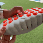 Su particularidad son los 22 nodos de espuma independientes en la suela, de un naranja intencionalmente llamativo, que se mueven como pequeños pistones al caminar. Nike dice que están mapeados sobre los puntos de presión anatómicos del pie y que, al estimular los mecanorreceptores de la planta, activan el córtex somatosensorial y ayudan a sentirte «más calmado, enfocado y presente».