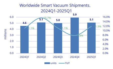 El aspirante a robot está de moda. Las empresas chinas se han beneficiado además de una tendencia positiva en este segmento. A nivel global se distribuyeron (no necesariamente lo mismo que «vendidos») 5.09 millones de unidades en el primer trimestre, 11.9% más que en el mismo trimestre de 2024.