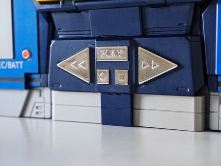 Este robot es, fíjate, el primer animatrónico Soundwave capaz de conseguir una transformación completa, es decir, pasar de un reproductor de casetes a un robot que, de hecho, funciona como altavoz bluetooth y grabadora. La transformación es, por supuesto, impresionante y, para demostrarlo, un botón.
