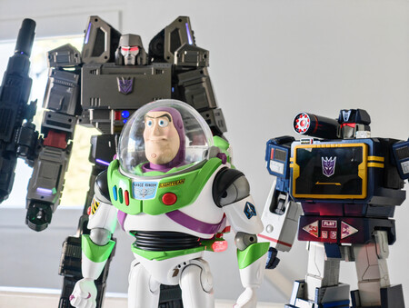 Así que le escribí a Robosen para preguntarle por el Soundwave, probarlo y contarle a qué tal. ¿Esperanzas? Cero. No por ellos, sino porque entiendo que enviar un robot de 1.600 euros por mensajería en plena Navidad es algo que quieres, que es algo que quieres, no lo quieres. Bueno, ni uno, ni dos. Pero tres. Robosen me dio no sólo Soundwave, sino también Megatron y una edición limitada de Buzz Lightyear.