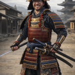 «Convierte a este hombre en un samurái japonés de cuerpo entero, con armadura y katanas tradicionales, en un escenario histórico realista, sin elementos modernos».