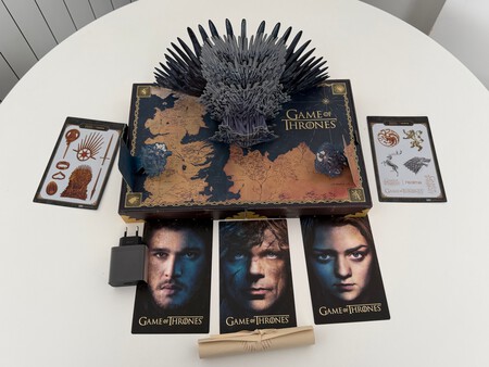 Muchos accesorios personalizados de ‘Juego de Tronos’ en la caja y hasta el ya inédito adaptador de corriente que pocos fabricantes siguen añadiendo (Imagen: )