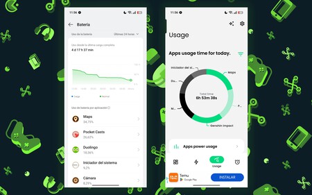 En mi opinión, donde mejor se demuestra lo bestial de esta batería es en los usos más intensivos como los del anterior ejemplo. Retiramos el dispositivo del cargador a las 7.00h de la mañana y nos pusimos a darle bastante uso en juegos exigentes como ‘Genshin Impact’, a grabar vídeo, consumirlo en aplicaciones de streaming y utilizarlo como GPS en viajes largos.