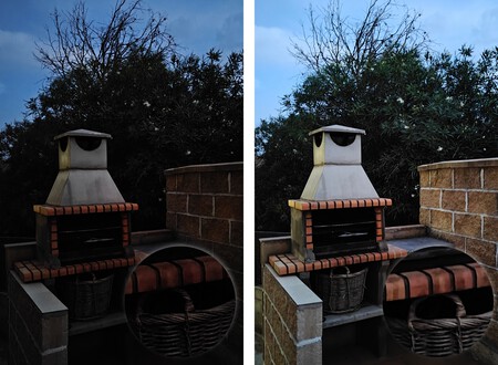 Cámara trasera principal sin modo noche (izda.) y con modo noche (dcha.) (Imagen: )