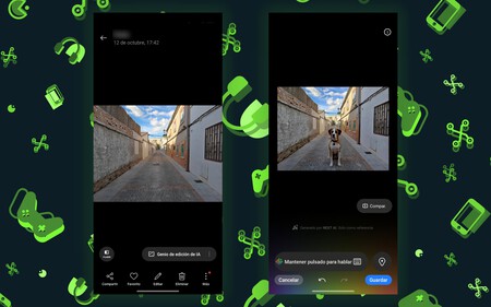 Entrando en la app Fotografías (la nativa de Realme), aparece un botón con el que acceder al Genio y pedirle que genere la imagen con un simple prompt, ya sea por texto o voz. Y ya te adelanto que es algo adictivo y que funciona muy bien, ya sea en ese añadido de fotos o en otras funciones como eliminar un fondo o editar de forma inteligente la foto modificando elementos como la luminosidad, temperatura de color, etc.