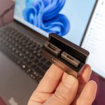 Pensé que ya estaba harto de un concepto modular, pero no: Lenovo se reservó algunos puertos extraíbles. Situados uno en cada extremo, es posible retirarlos para colocar un puerto USB-C extra, por ejemplo. O Un HDMI, los dos conectores que Lenovo tiene actualmente como muestra. Como es un concepto, la PC Lenovo ThinkBook Modular AI podría evolucionar con más accesorios tipo puerto.